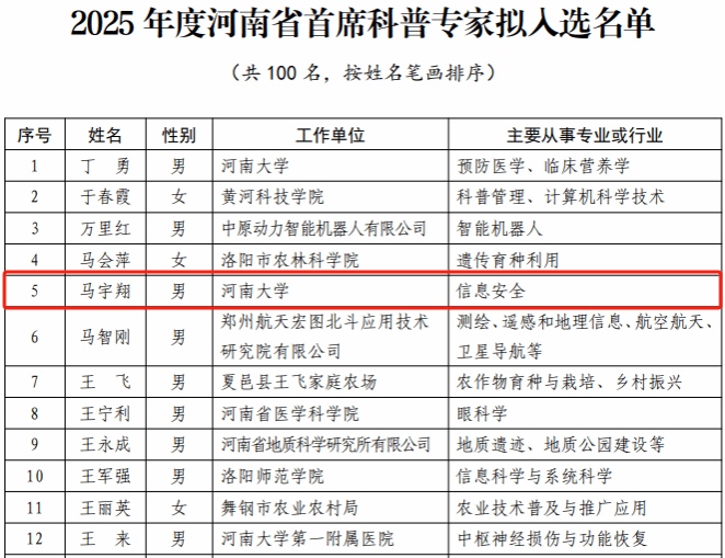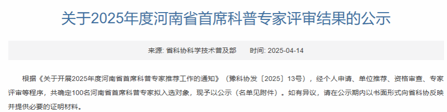 近日,河南省科学技术协会发布2025年度河南省首席科普专家拟入选名单公示,黄瓜视频