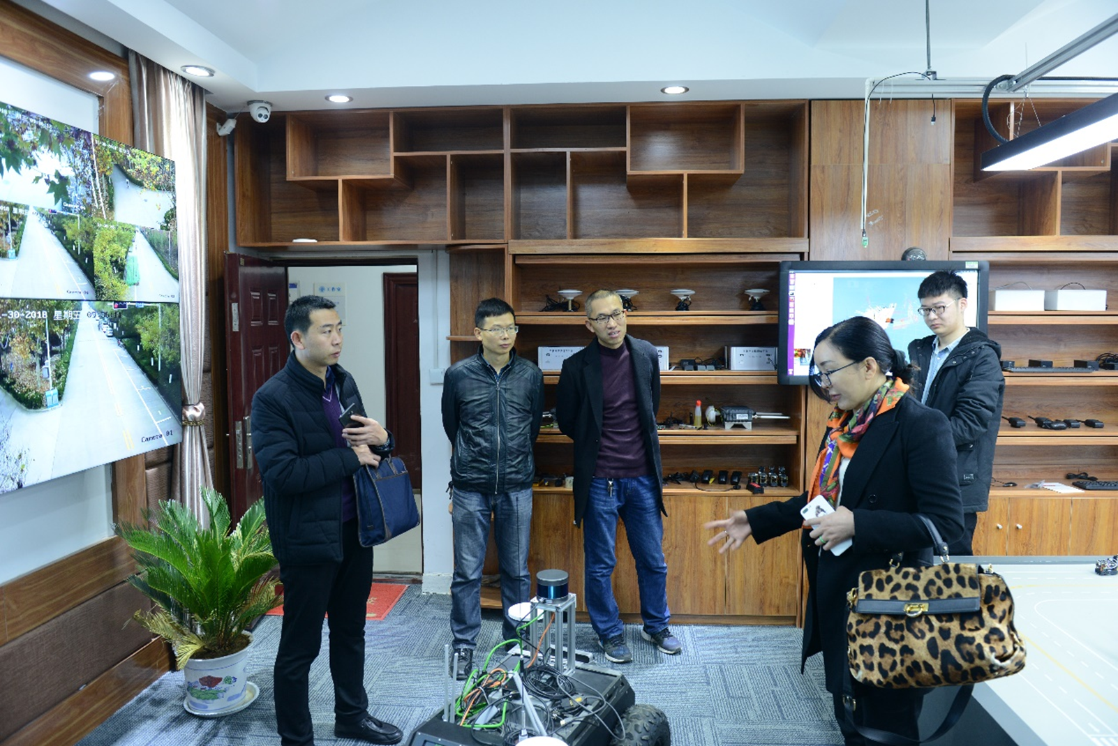 之后,孙总参观了大数据分析与处理重点实验室、大数据双创基地、遥感研发室和车联网研发室,各项目组负责人介绍了近期的工作进展情况和取得的主要成绩。孙经理询问了关心的几个有关遥感和车联网的问题,同时也表达了自己的见解和合作的想法。