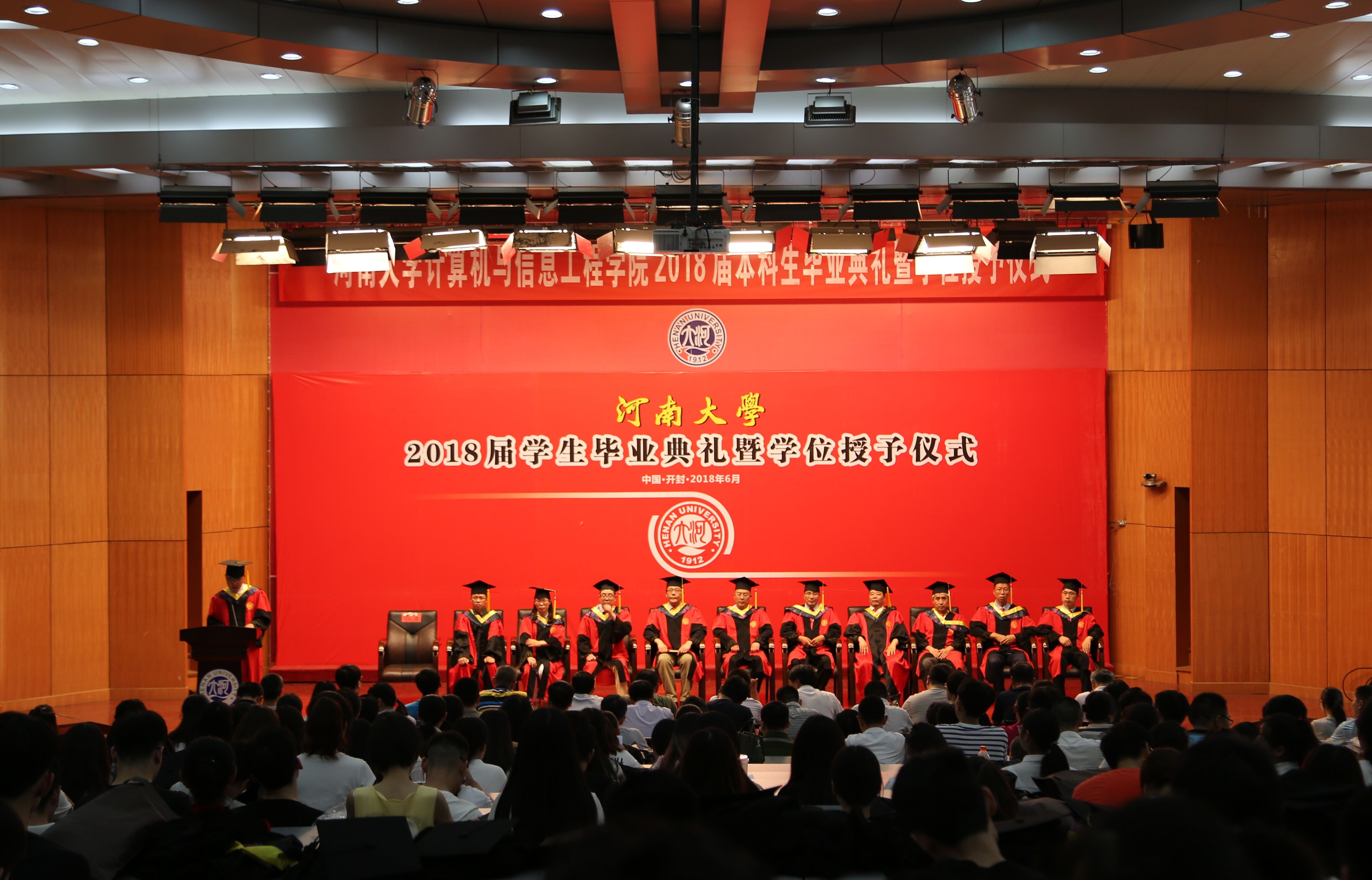 2018届本科生毕业典礼暨学位授予仪式在金明校区计算机大楼二楼报告厅举行。全体院领导、学位委员会成员、全体教师及全体毕业生参加了典礼。典礼仪式由院党委副书记孔涛主持。