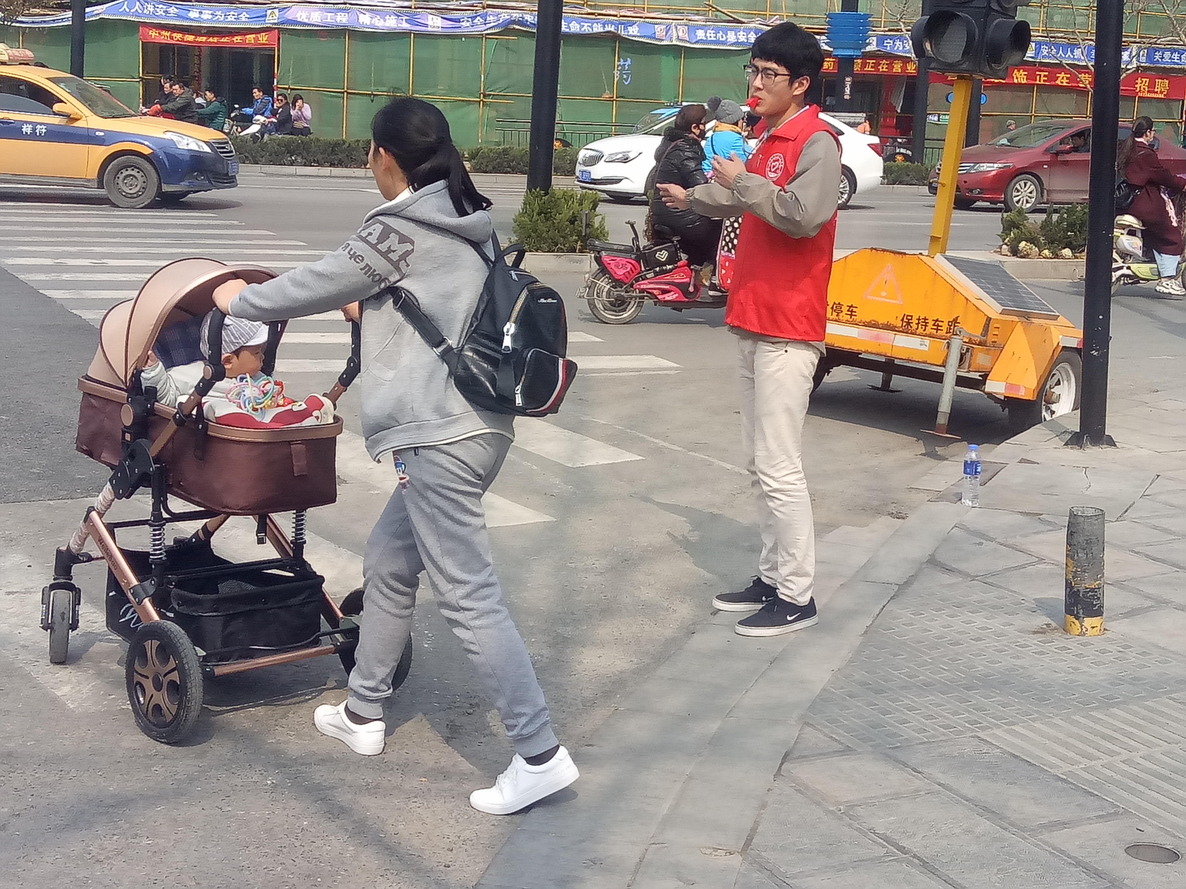 下午13:30,新玛特西门大街以及大梁路街头,志愿者们就已经穿上工作服,准备上岗了。志愿者们站在道路两旁,协助交通协警们指挥非机动车的有序通行。志愿者们站定,闪烁的坚毅目光,如同交通灯,提醒着过往人群按交通规则驾驶。直至18.00,该街道活动结束,整片街道一直有序无碍。