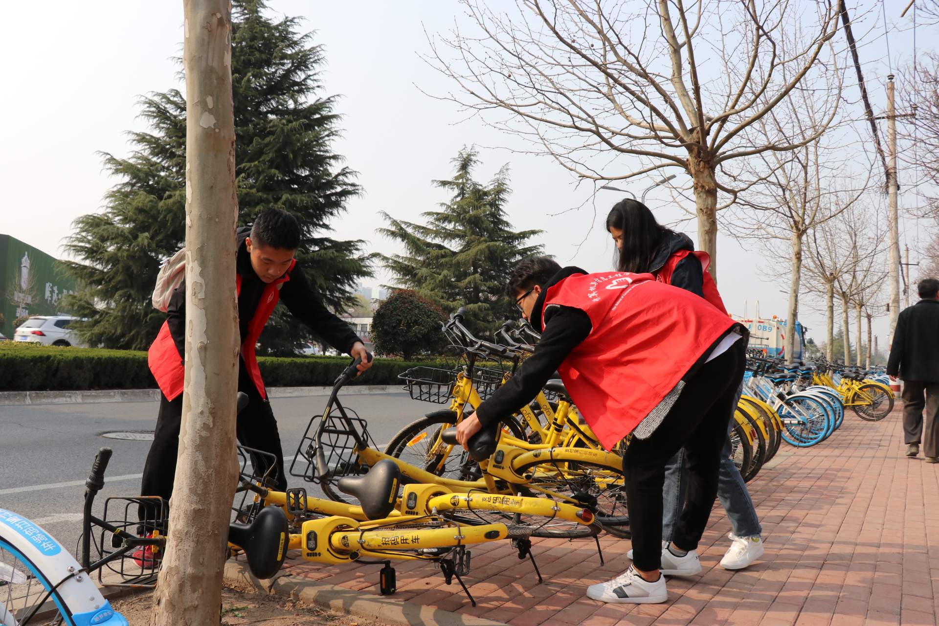 将视线转移到晋安路路段活动中,志愿者们积极参与,克服困难,将东倒西歪的共享单车扶正,并摆放到指定的停放区,排成一排,忙碌的身影成了一道别致的风景线,获得了过往行人和共享单车工作人员的肯定与赞扬。经过两个小时齐心协力的志愿活动,道路周边的共享单车整理完毕。活动于下午五点半圆满结束,大家的手上都布满了一层尘土,辛勤的劳动也使得原本杂乱的街道变得宽阔整洁,焕然一新。“我不觉得有多辛苦,我只认为自己做了一件很有意义的事情。”一位参与活动的志愿者这样说到,这也是学雷锋的意义所在。