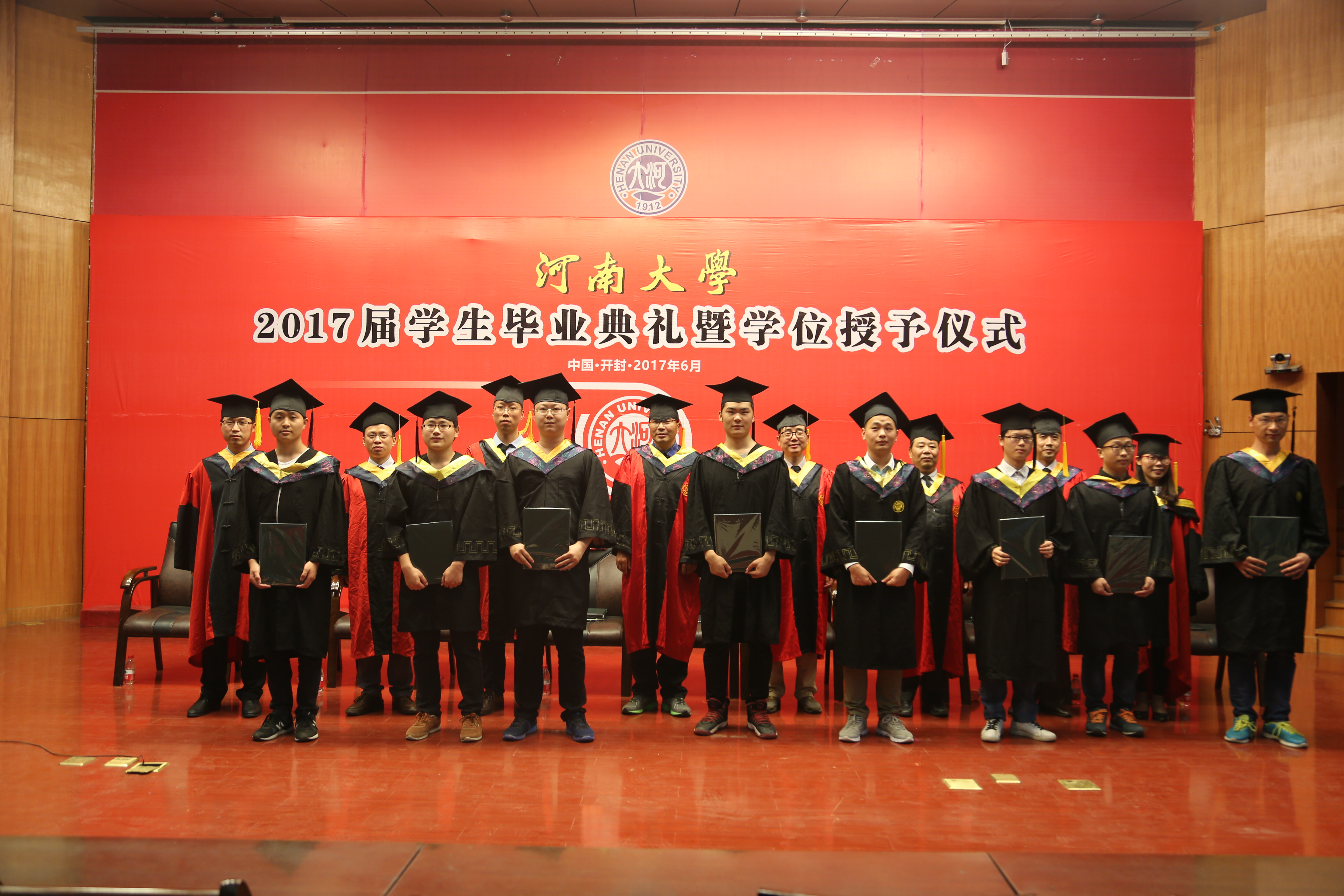 关于授予普通本科生学士学位的决定》。学院学位评定分委员会委员及学院领导为学院2017届本科毕业生援正流苏,颁发学位证书并合影留念。