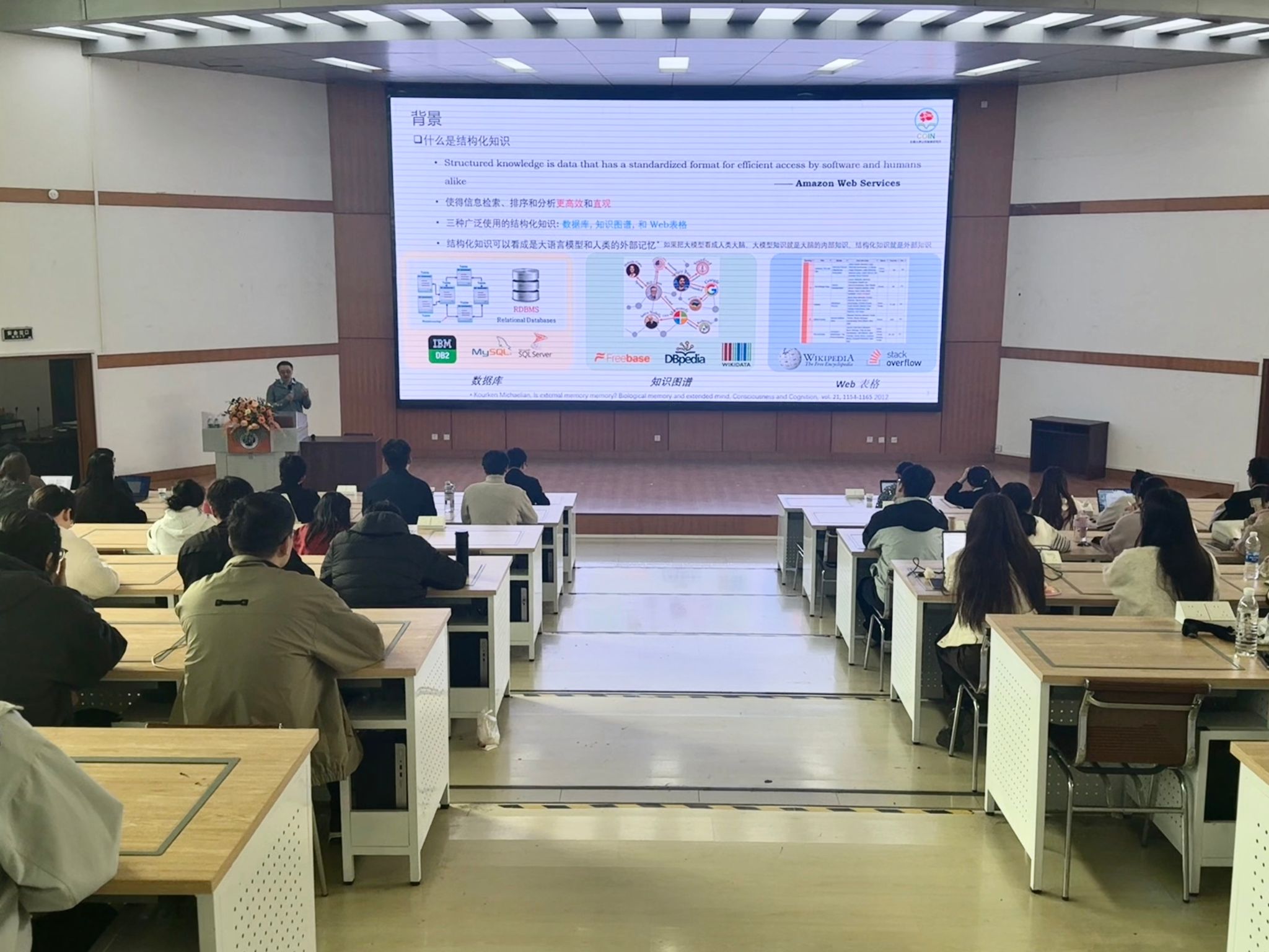 师生作主题为《基于大语言模型的结构化知识问答》的学术报告,报告由学院执行院长韩道军主持,学院教师及研究生在计算机大楼201会议室参加报告会。