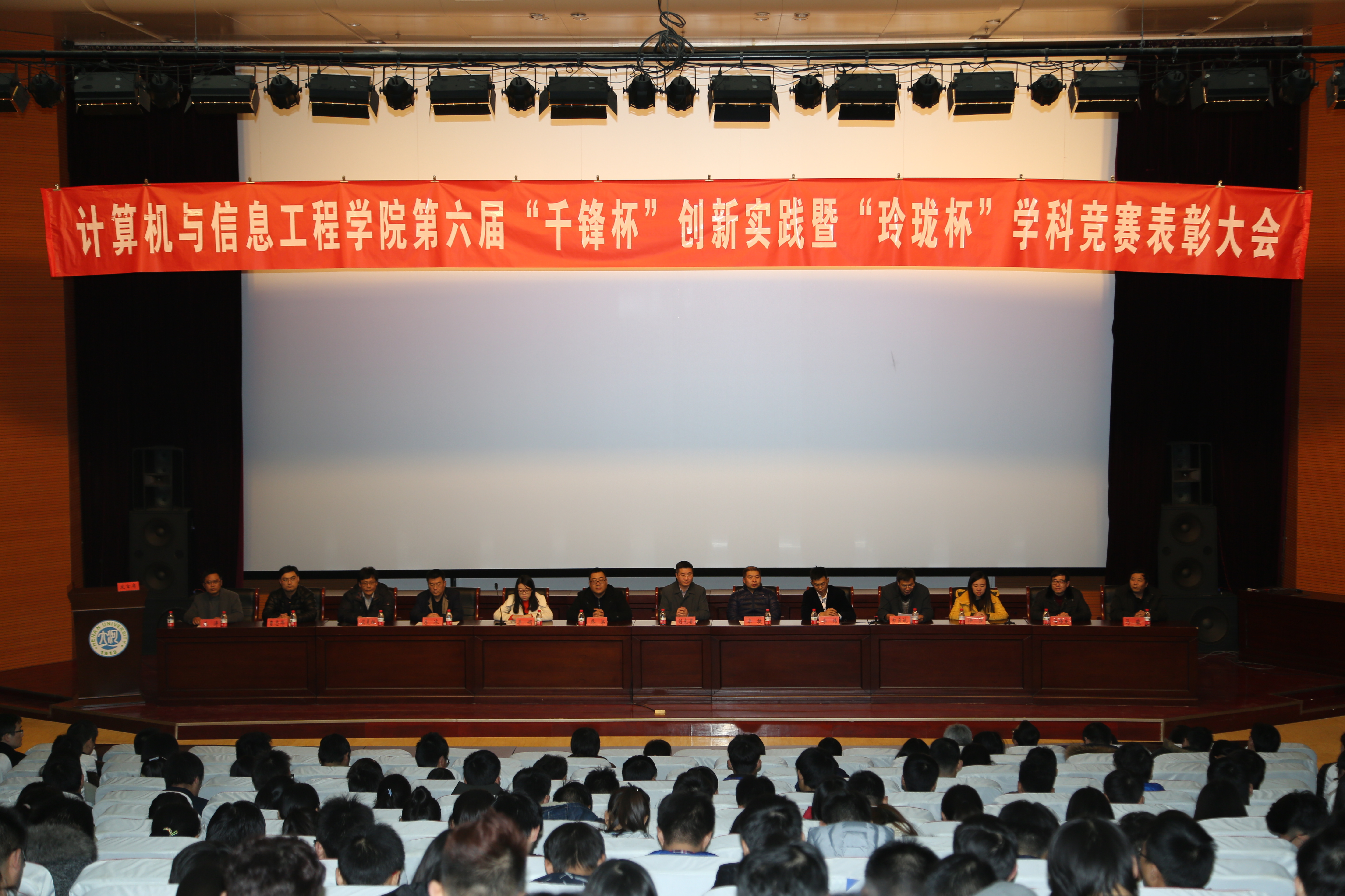 第六届“千锋杯”创新实践暨“玲珑杯”学科竞赛表彰大会在金明校区图书馆一楼报告厅中举行。校党委常委、副校长刘先省出席会议并讲话。校团委、教务处、就业创业指导中心及北京千锋互联科技有限公司、郑州珑凌科技有限公司有关负责人出席大会。学院党政领导班子、师生代表500多人参加了会议。会议由学院党委副书记孔涛主持。