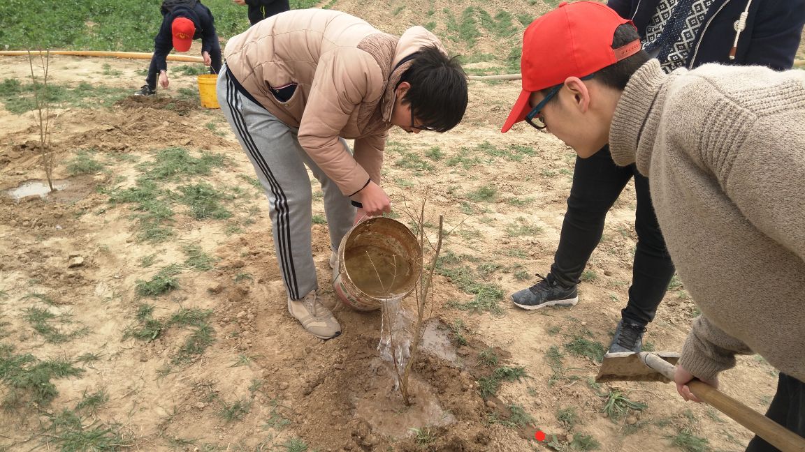 当志愿者们到达母亲河——黄河的时候,心头不禁一凉,因为此刻的黄河正被风沙笼罩,黄沙漫天这个词这个时候志愿者们才体会到它真正的含义。或许在风不大的时候,黄河很“温顺”,但是在风大的时候,真的很“暴躁”。志愿者们意识到,两会的“蓝天计划”是对中国多么重要,国家的绿化也真的需要我们全民参与。许多志愿者都没有带口罩,风沙灌口,志愿者们纷纷笑道“今天算是吃到土了”。但这依旧没有打退志愿者们植树的决心,恰恰相反更让志愿者们懂得保护环境,植树防沙的重要性。志愿者们在风沙中拿起手中的铁锹翻开土壤,两人一组的种下一颗颗小树苗。当种完树苗后,又开始提水给树苗浇水,生怕浇的少又生怕浇的多了,真是对树苗呵护有加。每个志愿者的心中早已把它看成了自己的孩子,希望它茁壮成长,能够早日成长起来为“蓝天计划”做出一份力量,为保卫母亲河而贡献。正如志愿者们自身,也正在如树苗般茁壮成长,日后为祖国的繁荣发展做贡献。