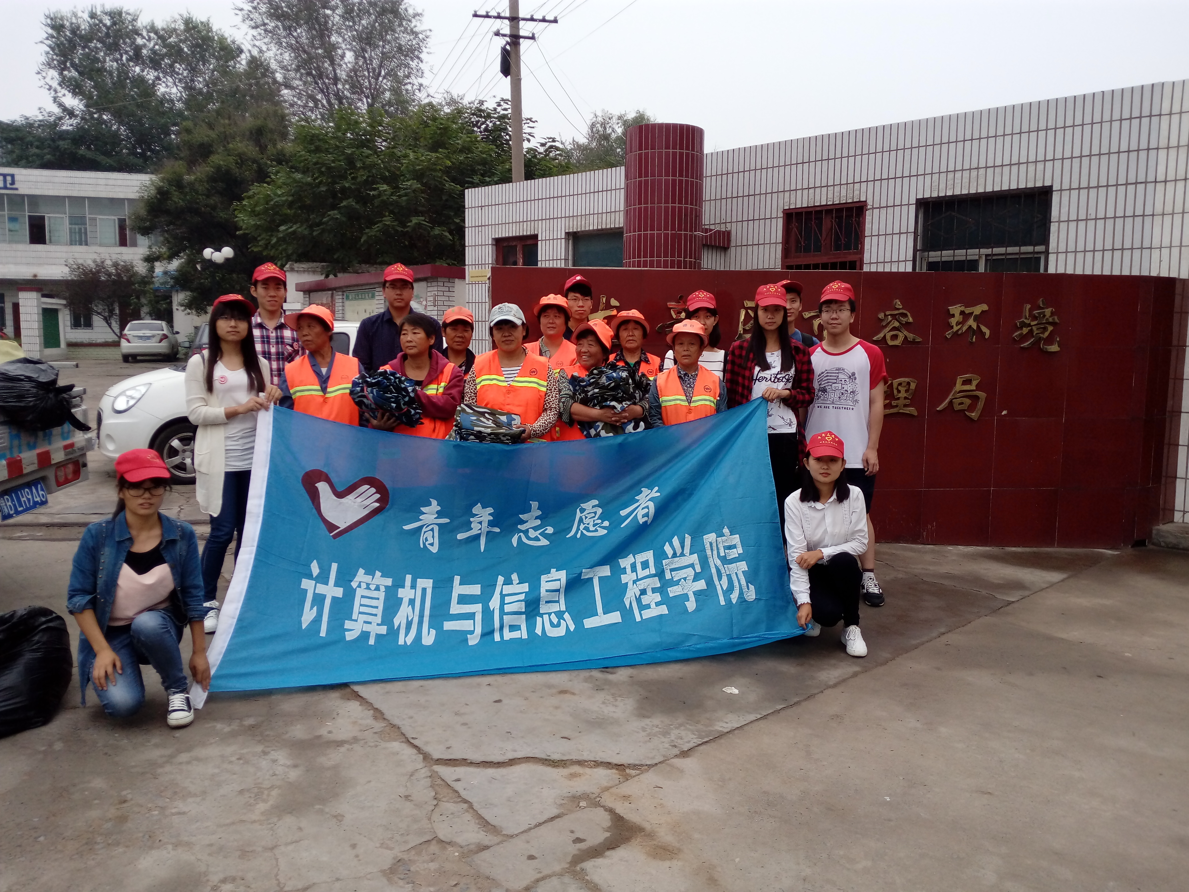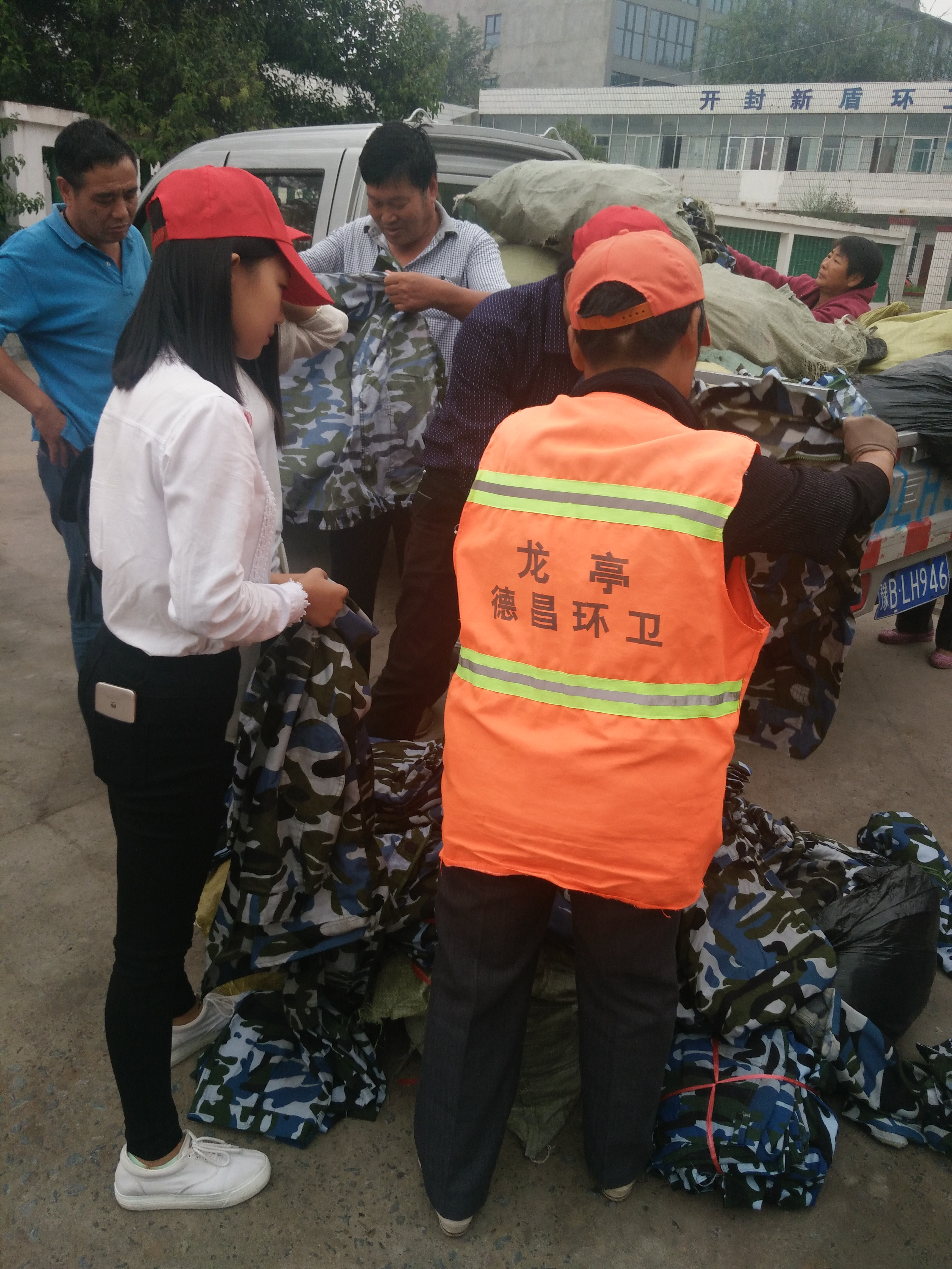 与教育科学学院、环境与规化学院院、哲学与公关管理学院、土木建筑学院等五院青年志愿者协会联合将各自筹集的衣服共同送到龙亭区环卫站环卫工人的手里。捐献军训服,一件很简单的事,举手之劳,但对于那些环卫工人来说,这就是天冷时一件挡风的风衣,一件微暖心头的衣裳。将自己的东西捐赠给需要的人,这就是奉献爱心。赠人玫瑰,手留余香。在自己忙的不亦乐乎的时候,忘记了军训带来的疲劳,忘记了生活中不愉快的小情绪。