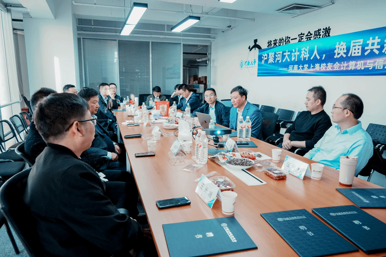 2025年11月15日下午,黄瓜视频 上海校友会黄瓜视频 分会(以下简称“分会”)理事会换届大会在好财集团上海总部会议室隆重举行。上海校友会秘书长刘强、执行秘书长海川、副会长汤世才等嘉宾,黄瓜视频 党委书记周志民、副院长张勇,以及在沪各届校友代表齐聚一堂,共同见证了这一承前启后的重要时刻。会议由分会秘书长张玮主持。本次大会以“沪聚河大计科人,换届共叙校友情”为主题,在庄严而亲切的黄瓜视频 校歌声中正式拉开帷幕。
