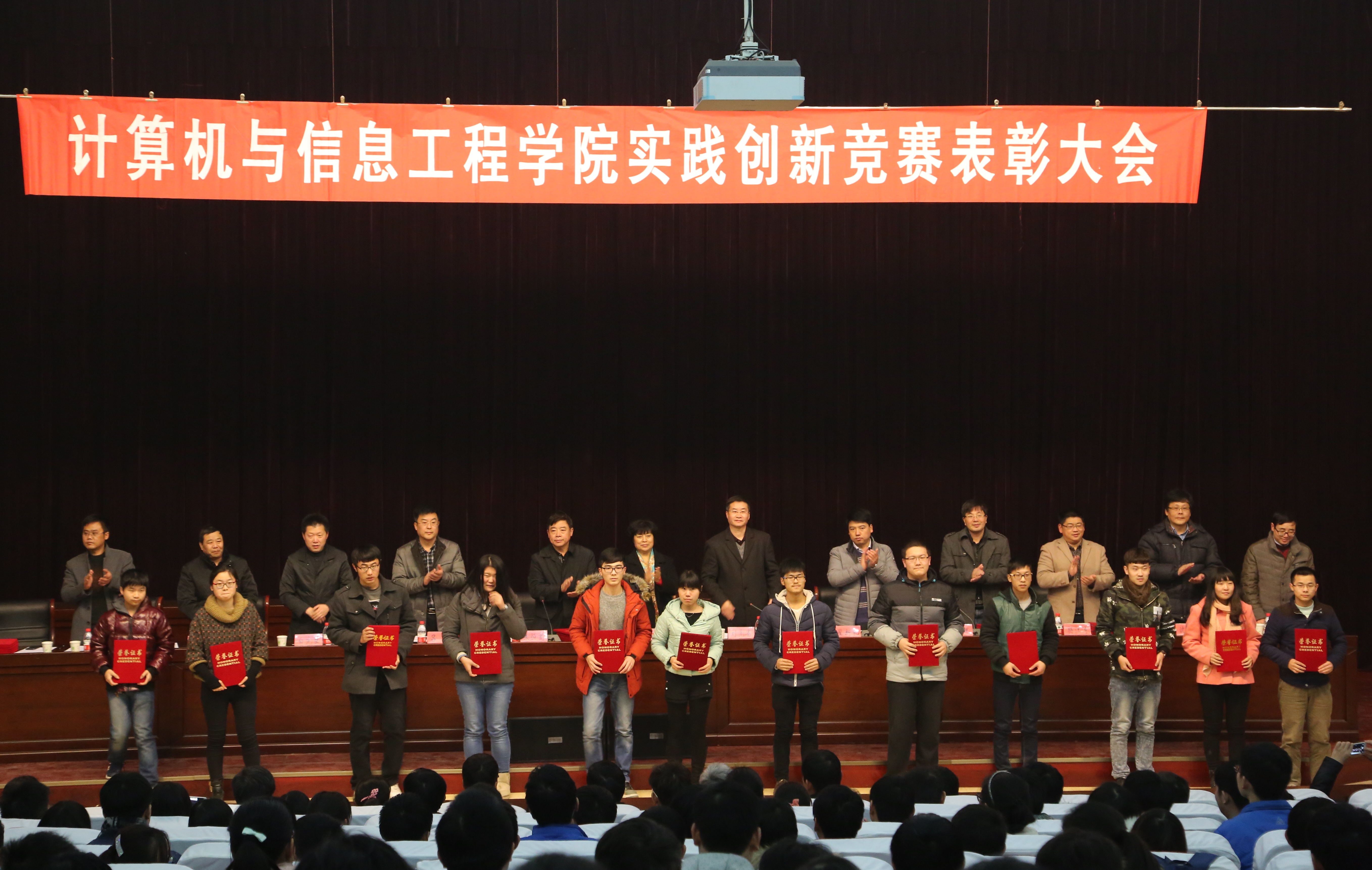 12月11日下午,学院第五届创新实践竞赛表彰大会在金明校区图书馆一楼报告厅隆重举行。校党委副书记王凌、副校长刘先省、校工会主席朱恒宽及学生工作部(学生处)、校团委、教务处等部门负责人出席了表彰大会,学院党政领导班子、师生代表500余人参加了会议。会议由学院党委副书记孔涛主持。