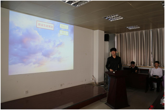 在主持人简单的介绍之后,12位参赛选手严阵以待。每位同学的发言包括三个方面:展示并讲解ppt内容、随机抽取问题并作出相应回答、评委对其进行提问。每人总计大约有10-15分钟的时间。各参赛选手通过他们精心制作的PPT向我们展示了他们的自我认识、职业分析以及最终的职业规划及人生目标。他们用饱含激情的语调展现了自己对未来的美好憧憬,用富含哲理的语句表示了自己对职业的理性目标。十二位同学各抒己见,每个人都有每个人闪耀夺目的一面,不仅让参会的同学们对职业规划有了更深层次的理解,更让评委们有机会更好地引导同学们对未来的规划。