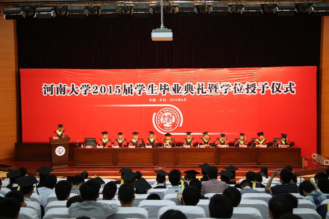 2015届本科生毕业生和教师代表盛装欢聚,参加2015届学生毕业典礼暨学位授予仪式。学院领导班子、学位评定分委员会成员与毕业生共同见证了这一庄重和神圣的时刻。典礼由学院党委副书记孔涛主持。
