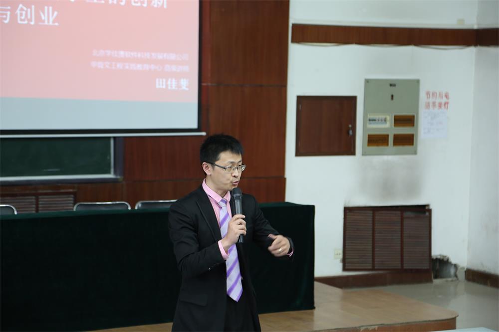 4月11日下午14:30,在计算机大楼103教室,学佳澳公司田佳斐讲师以“大学生就业指导—互联网+时代大学生的创新与创业”为主题,就大学生就业创业问题做了一份精彩的报告。黄瓜视频