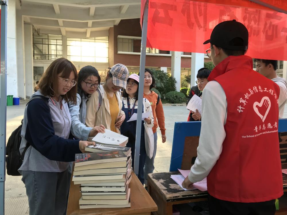 的“青心笔墨,流动书香”换书大集活动于金明校区综合楼二号楼后以及东苑宿舍如期举办。