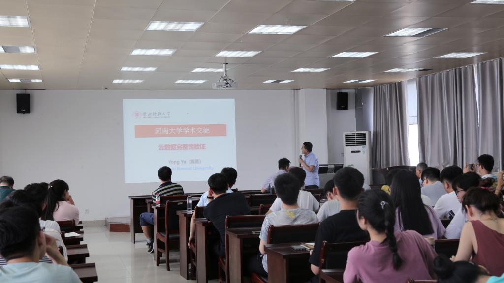 邀请,西安电子科技大学王保仓教授、朱辉教授和陕西师范大学禹勇教授在学院603会议室分别作了题为“新型计算环境下的公钥密码算法”、“云数据完整性验证”和“互联网环境下敏感数据隐私保护”的学术报告。报告会由学院老师刘辉主持,学院教师和研究生百余人参加了三场报告会。