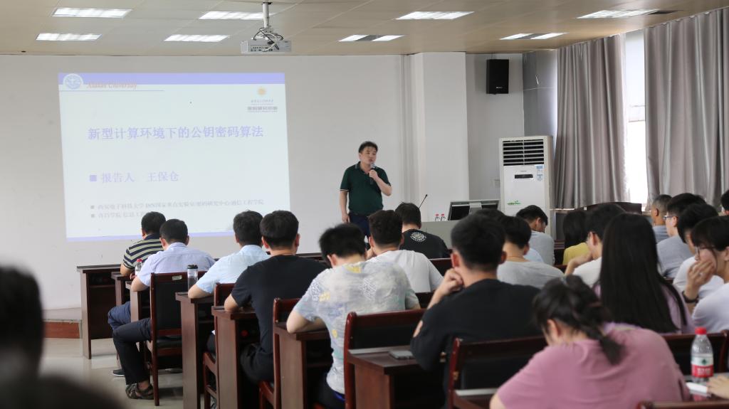 报告会上,王保仓教授以当下密码算法的重要性,各种加密算法的特点为引入,介绍了新型计算环境和新型应用环境中的密码算法。目前因为量子计算机对经典密码算法的影响,国内外在面临量子计算的采取的一些应对措施,同时联系云计算、大数据、物联网等关键性技术典型密码算法应该如何应对。