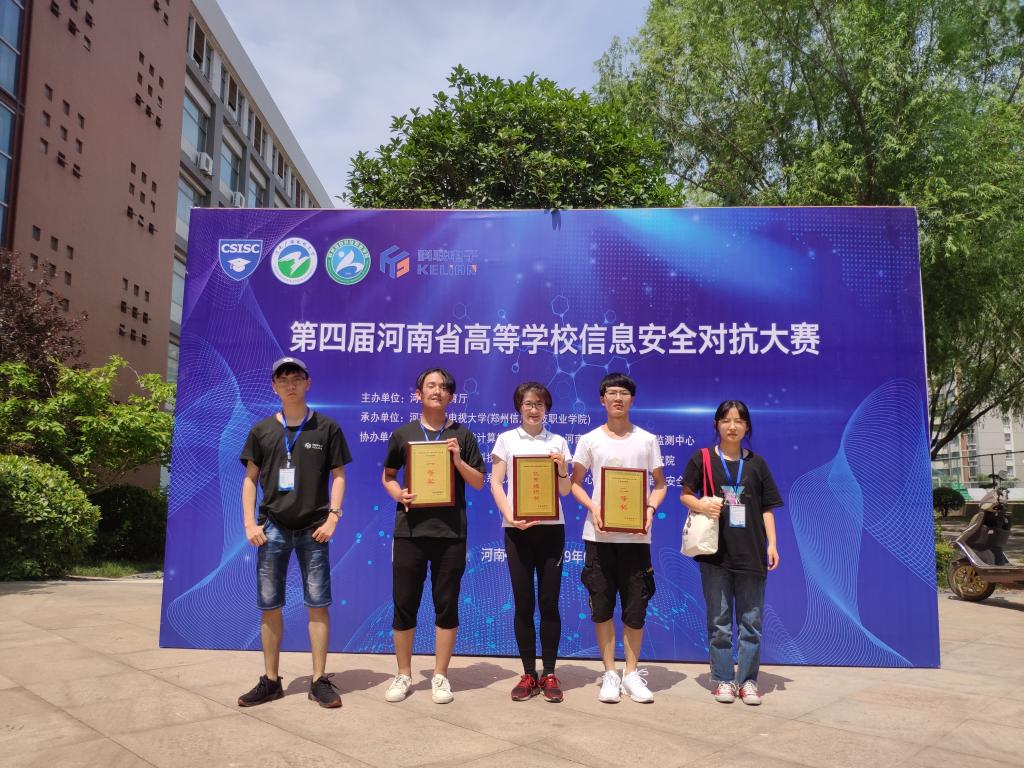 6月22日在河南广播电视大学举办了第四届河南省高等学校信息安全对抗大赛线下分组对抗大赛,黄瓜视频 “摇光”队赵哲、徐庚辰、张棂炫取得一等奖,“彼岸花”队涂志兴、王涧超、叶世龙获得二等奖。