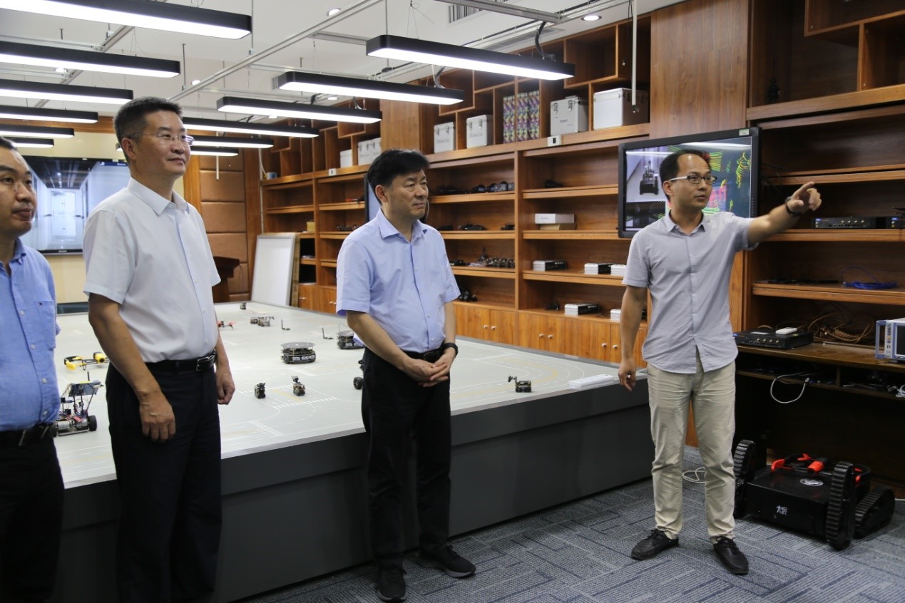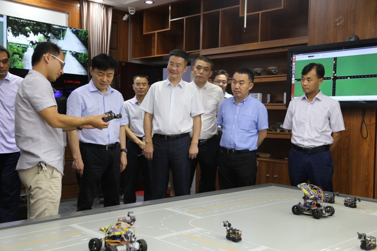 调研“5G+无人驾驶与车路协同基地”的建设情况,校党委常委、副校长刘先省和学院副院长胡振涛陪同考察,开封市通管办、移动、联通、电信等主要领导参加调研。宋灵恩局长对黄瓜视频