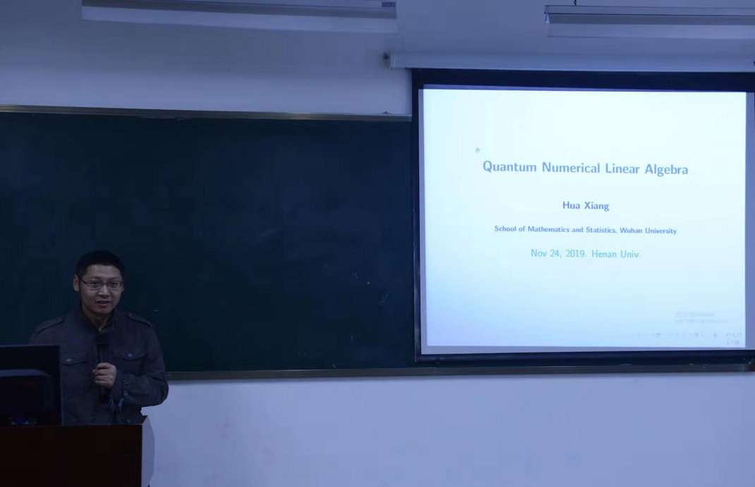 做了题为“量子数值线性代数”的报告。报告由左宪禹老师主持,学院部分师生参加了本次报告。