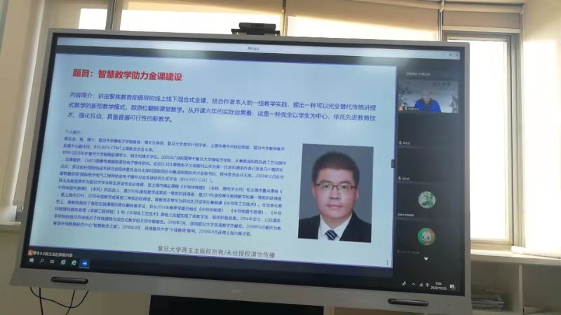 为了持续推进学校一流本科课程建设,进一步促进高校教师课堂教学的科学化、规范化和有效化,提升教师自身教学能力,组织学习了复旦大学“原位翻转课堂教学”实践应用及“国家级一流课程申报”要点解析专题培训。学院教学副院长韩道军与郭拯危、张瑾等多位相关老师参加培训。