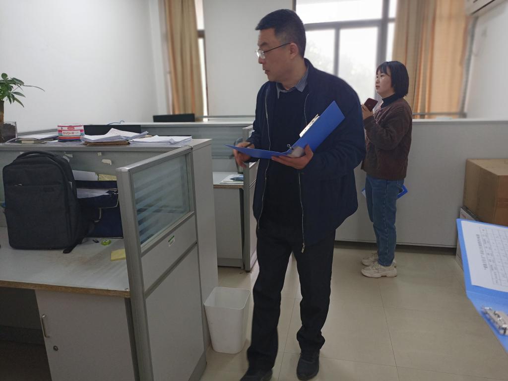 3月26日,学院组建检查评比小组,分别由学院党委书记吕冰和副院长柯杨带队,逐个办公室依标依据进行评比打分,评出“文明办公室”,随后将授予“文明办公室”流动红旗。