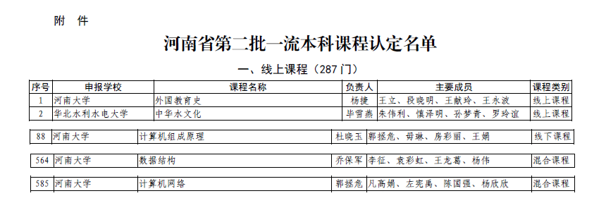杜晓玉副教授团队的“计算机组成原理”课程被认定为省级线下一流本科课程,乔保军教授团队的“数据结构”课程、郭拯危教授团队的“计算机网络”被认定为省级线上线下混合一流本科课程