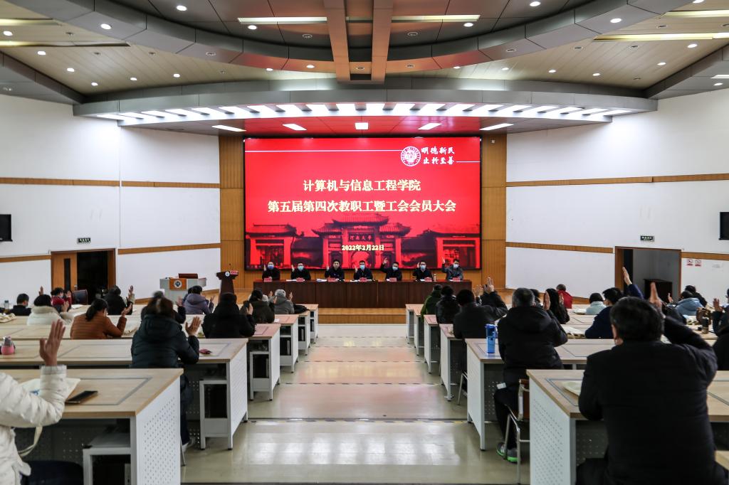 第五届第四次教职工暨工会会员大会在计算机大楼201教室举行,学院全体教职工参加大会,大会由学院党委副书记曹堃主持。