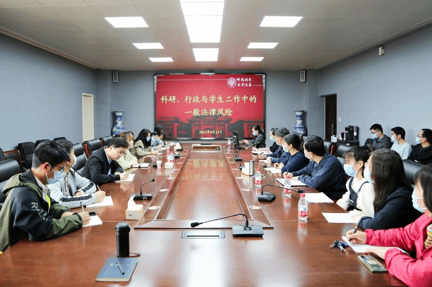 邀请校长办公室法律事务办公室科长石宇珺在学院302会议室作了题为“科研、行政与学生工作中的一般法律风险”的专题培训。学院领导班子成员、中层干部、党支部书记、辅导员和班主任参加了培训。培训会由学院党委副书记曹堃主持。