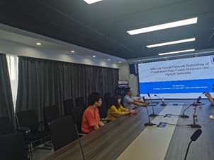 杜晓玉副教授首先对樊卫北副教授的到来表示热烈欢迎,并简要介绍了网络空间安全团队的基本情况。樊卫北副教授进行了主题为云数据中心嵌入到光网络中的高效虚拟网络学术报告,报告从提出光学数据中心网络的新型虚拟网络嵌入数学模型、依据节点接近感知和路径综合评估推导出位置算法优先级、将DCN路由和波长分配到光网络并确定所需波长数量下限三个主要方面进行讲解,利用光纤的并行传输特性降低网络拓扑的复杂性,阐述了该类研究问题的解决方法,最终的评估结果得到各位老师的高度认可。