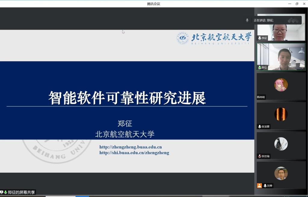 郑征老师在报告中从智能软件可靠性的问题及研究现状开始,围绕智能软件的失效和缺陷显现机理、智能软件测试方法、智能软件可靠性增强等主题详细介绍了北京航空航天大学可信智能软件研究室近年来在该方向上的最新研究成果。在问答环节,郑教授与多位师生进行了充分交流,回答了师生感兴趣的问题。本次报告内容丰富,与会师生收获颇丰,对智能软件可靠性研究有了较为全面的了解。