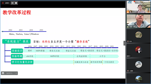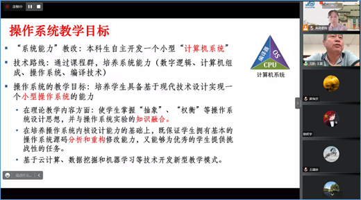 报告结束之后,王雷教授与计算机系操作系统课程组的老师进行了在线交流,对操作系统课程实验的开设方案提出了宝贵建议。