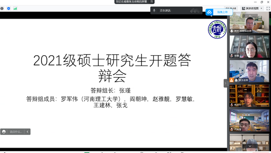 本次答辩会共有2021级共10名硕士研究生进行开题答辩。他们详细汇报了各自的选题背景及意义、国内外相关工作、研究思路、创新点以及研究方法、课题研究进展等。