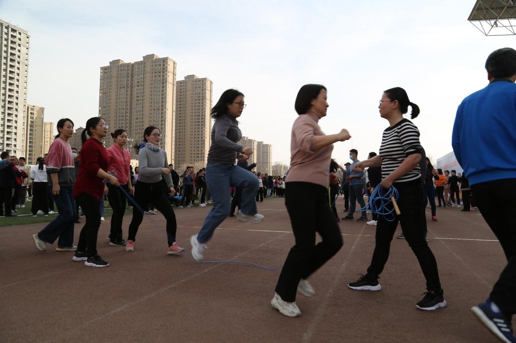 在集体项目跳大绳中,副书记曹堃作为队员参加了比赛,比赛中,2名队员匀速专注地摇动大绳,10名队员排成“一”字型,你追我赶,循环往来,逐个跳跃大绳,在3分钟内全神贯注去竞赛。最终在12名队员全力拼搏下,在拉拉队员加油打气声中以256个的成绩获得全校二等奖,取得了近年来学院在该项比赛中的最好成绩和最高奖项。在跳绳、毽球、呼啦圈三项个人比赛中,学院女教职工队员奋力拼搏,为学院代表队增分添彩。