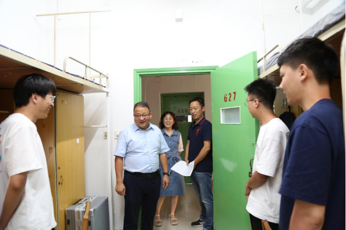 党委书记周志民、执行院长韩道军带领学院领导班子成员、系主任、新生辅导员赴学生宿舍慰问本科和研究生新生,送上来自学院的温暖与关怀。
