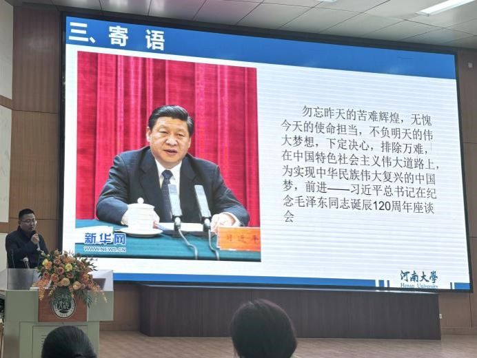 在安全教育环节,吴坤重点介绍了安全意识养成、国家安全及基本安全常识,他特别强调了财产安全、消防安全、网络安全等方面内容,并提醒同学们注意食品卫生安全、传染性疾病预防、防溺水和自然灾害等问题。接着,吴坤强调了心理健康的重要性,呼吁同学们保持良好心态,应对学业和生活中的困难。课程最后,吴坤借用习近平总书记的讲话寄语同学们,鼓励大家发扬新时代河大精神,以自信、拼搏、开放、创新的新姿态拥抱未来,为强国建设和民族复兴贡献力量。