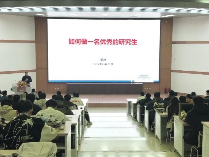 2024级全体硕博研究生迎来了一堂别开生面的综合素质教育课。党委研究生工作部副部长吴坤结合自己学习和工作体会,和同学们分享了如何成为一名优秀的研究生、大学生安全教育以及心理健康等方面内容。课程内容丰富,语言幽默风趣,现场氛围轻松活泼。
