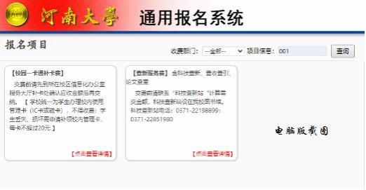 校园统一支付平台”黄瓜视频//pay.huangguasp8.com/,点击上角“报名系统”进入,选择对应的课程名称和收费标准。