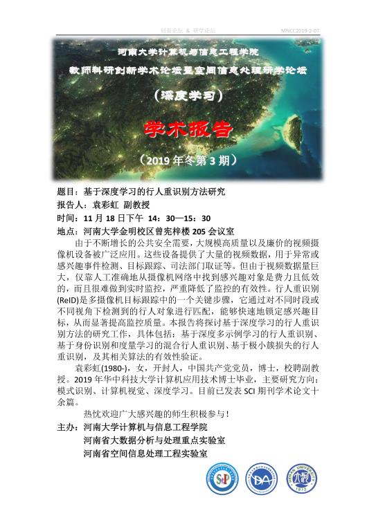 由于不断增长的公共安全需要,大规模高质量以及廉价的视频摄像机设备被广泛应用。这些设备提供了大量的视频数据,用于异常或感兴趣事件检测、目标跟踪、司法部门取证等。但由于视频数据量巨大,仅靠人工准确地从摄像机网络中找到感兴趣对象是费力且低效的,而且很难做到实时监控,严重降低了监控的有效性。行人重识别(ReID)是多摄像机目标跟踪中的一个关键步骤,它通过对不同时段或不同视角下检测到的行人对象进行匹配,能够快速地锁定感兴趣目标,从而显著提高监控质量。本报告将探讨基于深度学习的行人重识别方法的研究工作,具体包括:基于深度多示例学习的行人重识别、基于身份识别和度量学习的混合行人重识别、基于极小簇损失的行人重识别,及其相关算法的有效性验证。