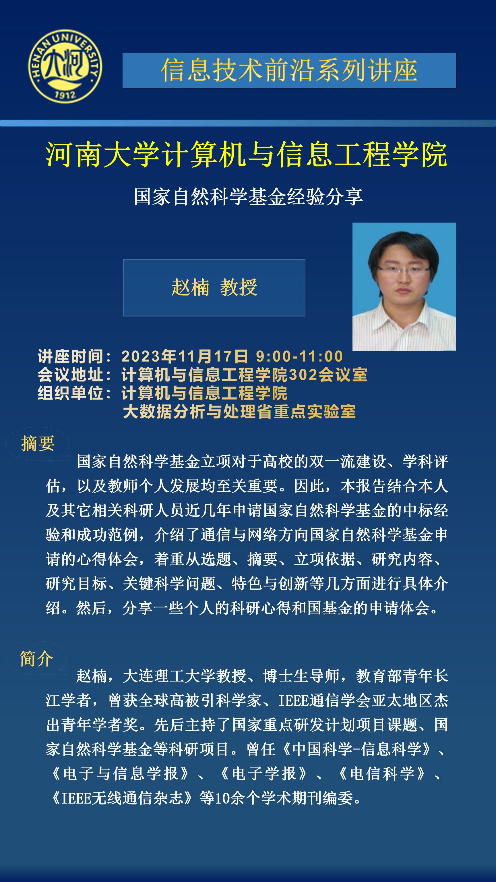 赵楠:国家自然科学基金经验分享(时间:11月16日)