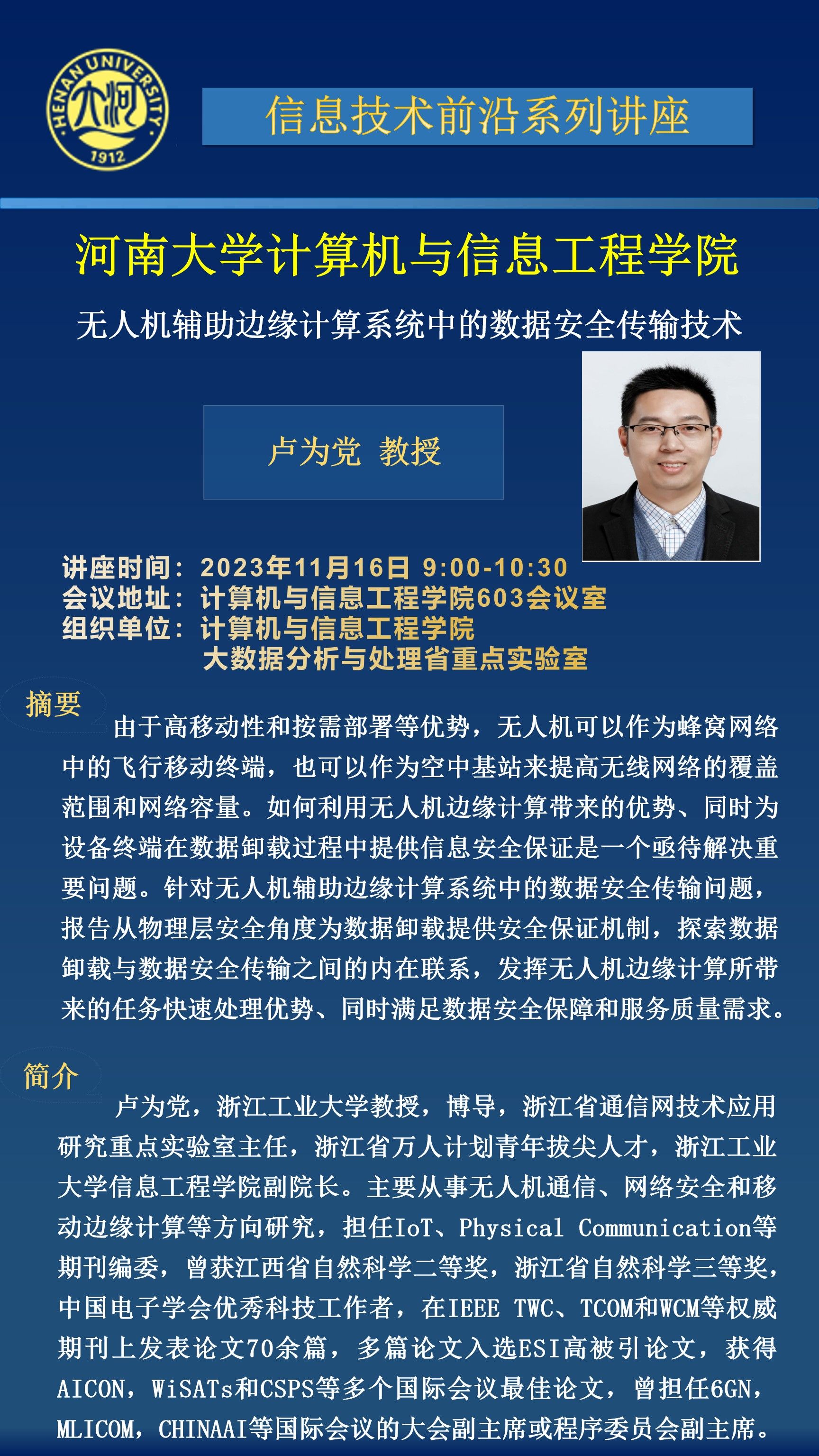 卢为党:无人机辅助边缘计算系统中的数据安全传输技术(时间:11月16日)
