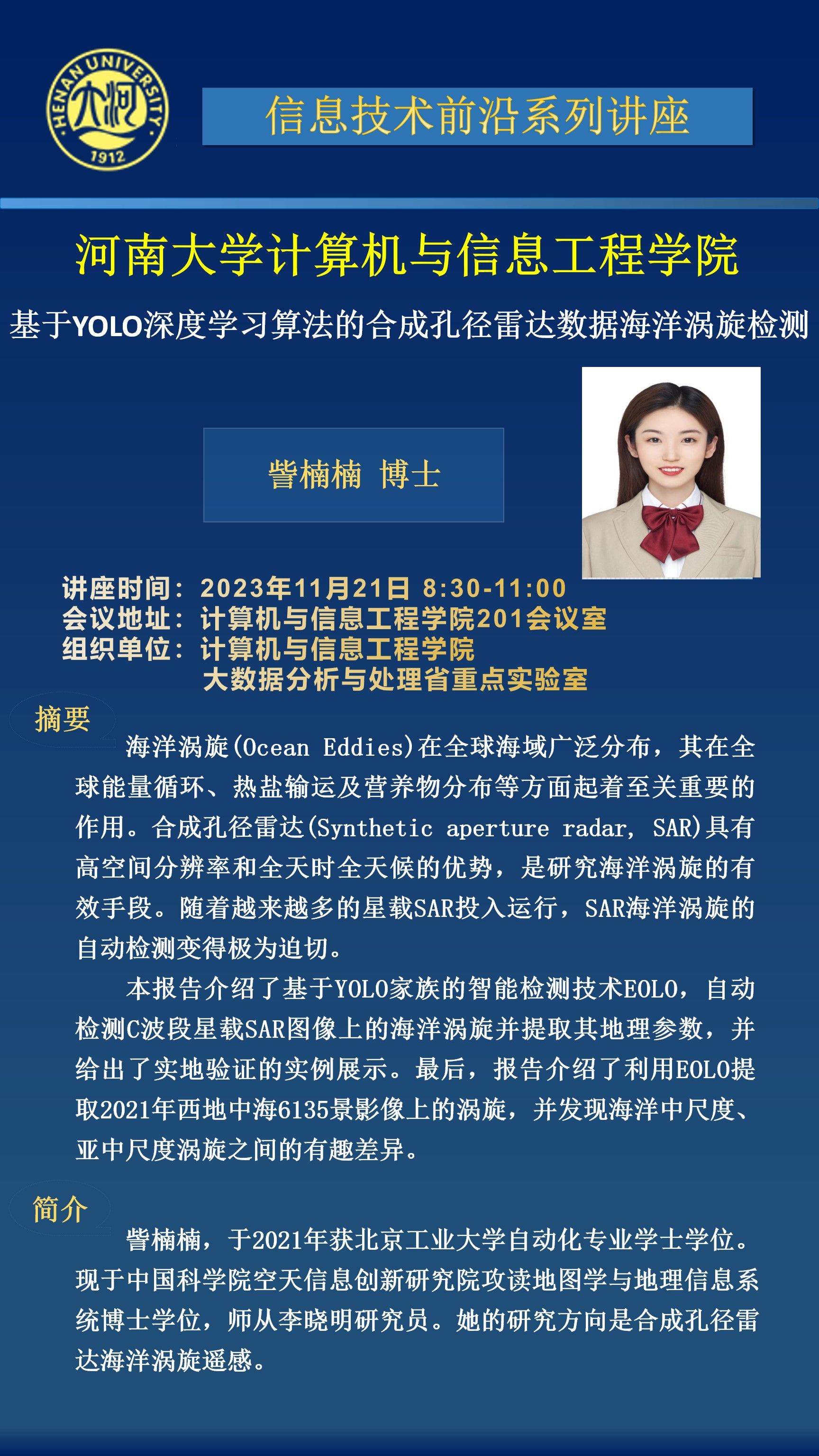 訾楠楠:合成孔径雷达数据海洋涡旋检测(时间:11月21日)