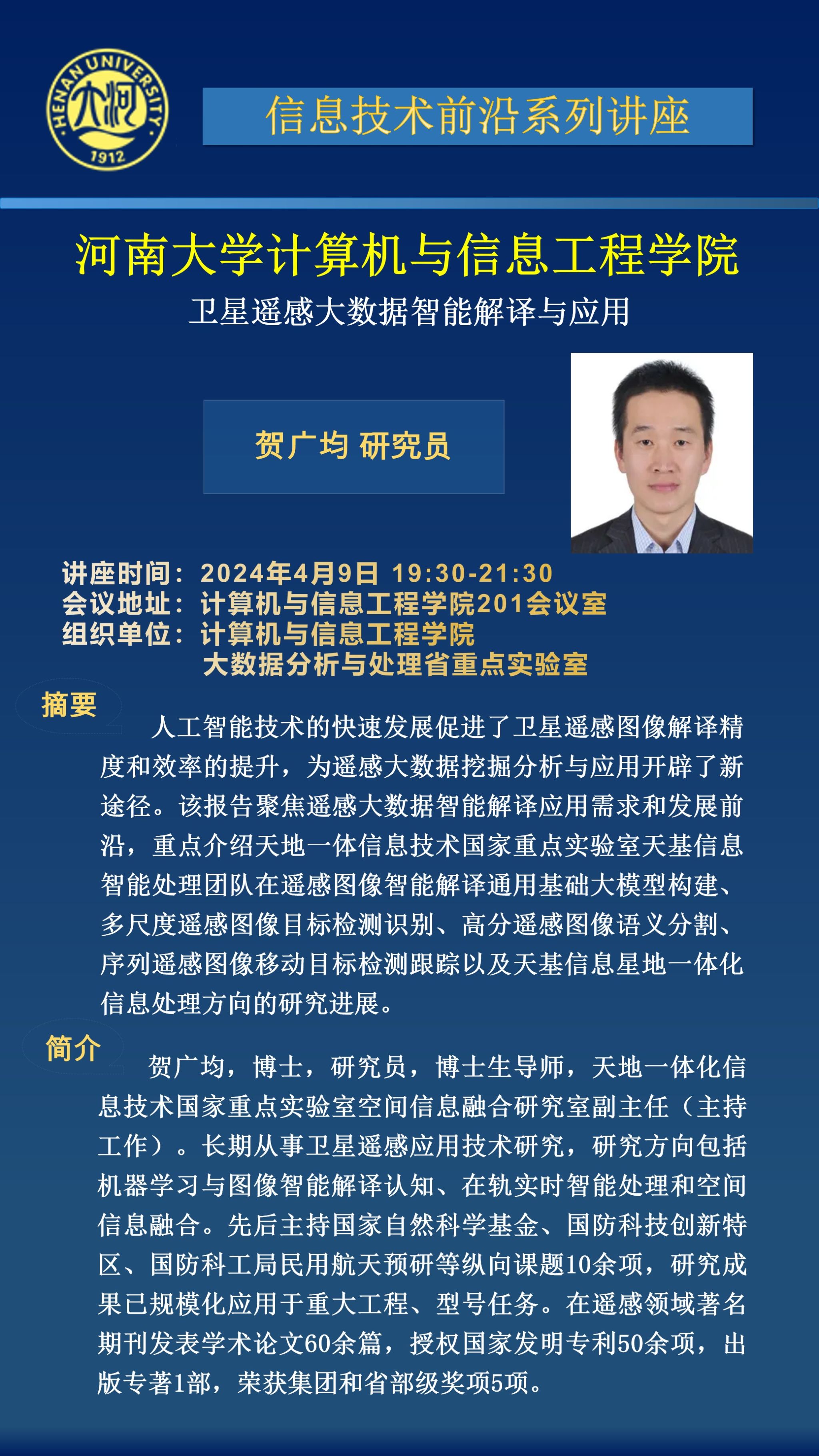 贺广均:卫星遥感大数据智能解译与应用(时间:4月9日)