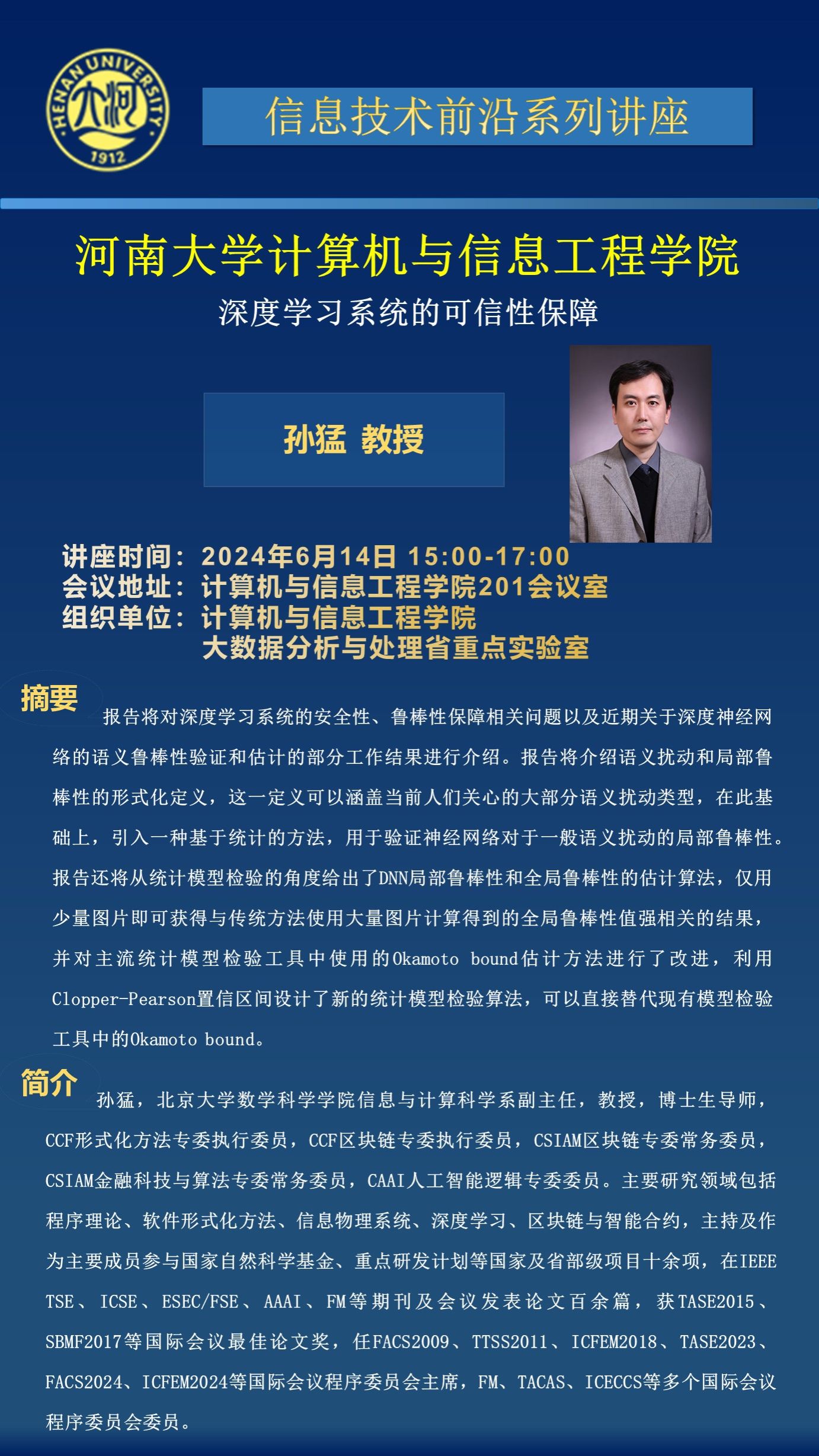 孙猛:深度学习系统的可信性保障(时间:6月14日)