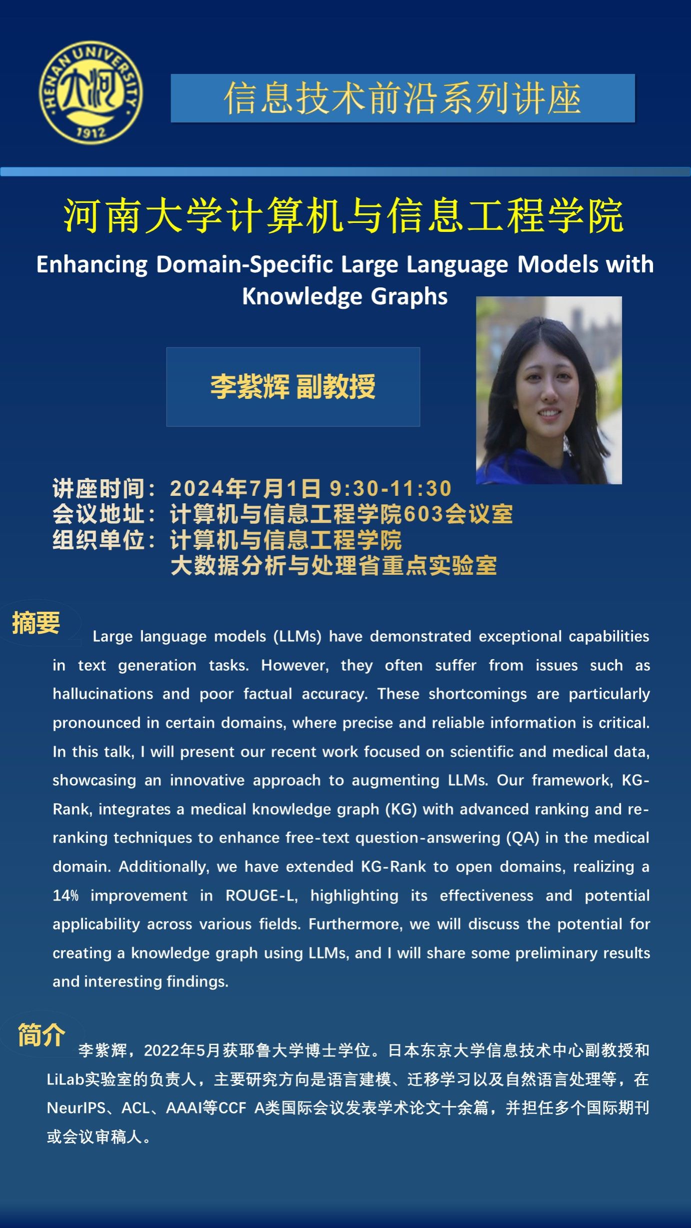 李紫辉:Enhancing Domain-Specific Large Language Models with Knowledge Graphs(时间:7月1日)
