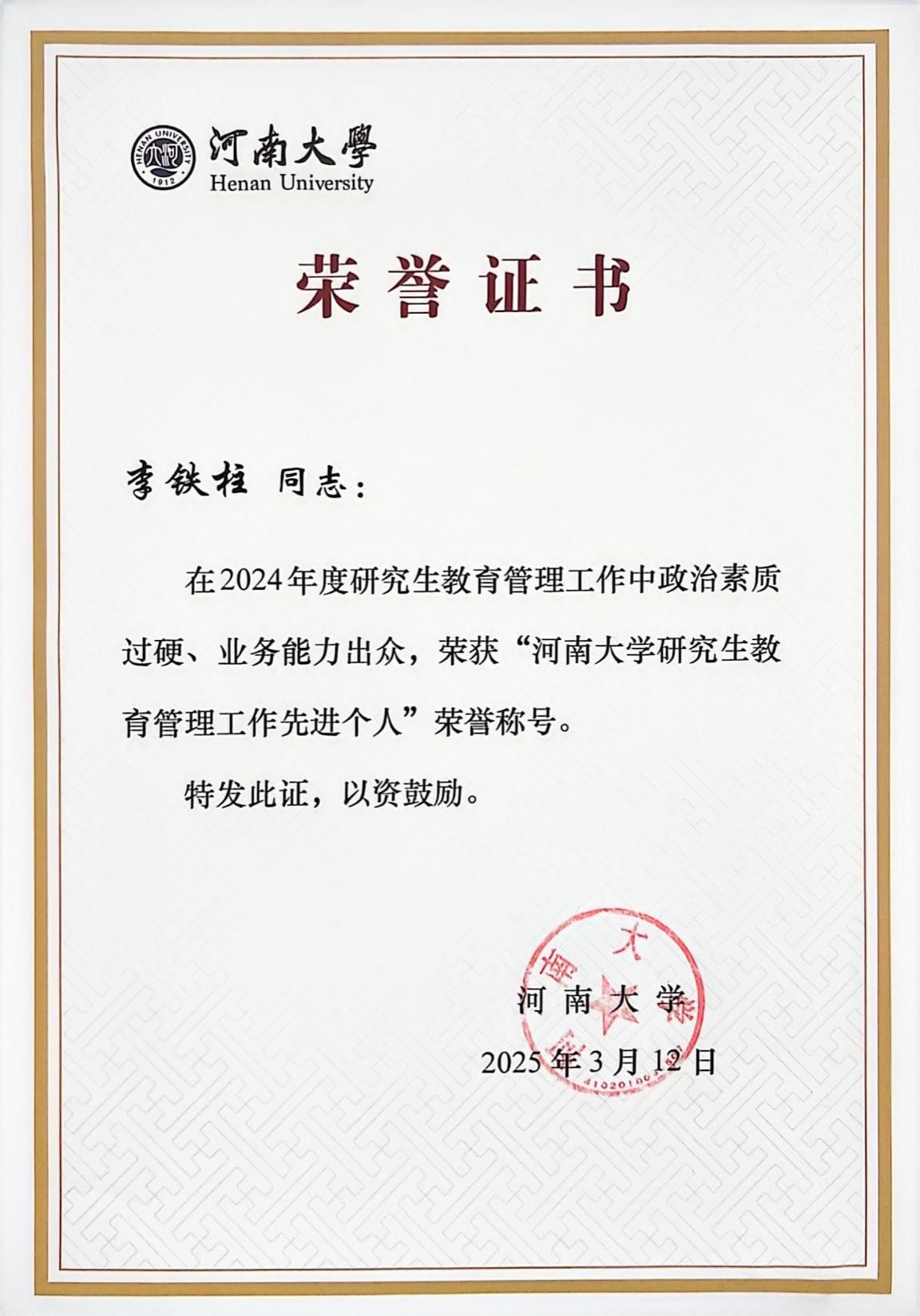 优秀研究生指导教师”荣誉称号,李铁柱老师获批“黄瓜视频