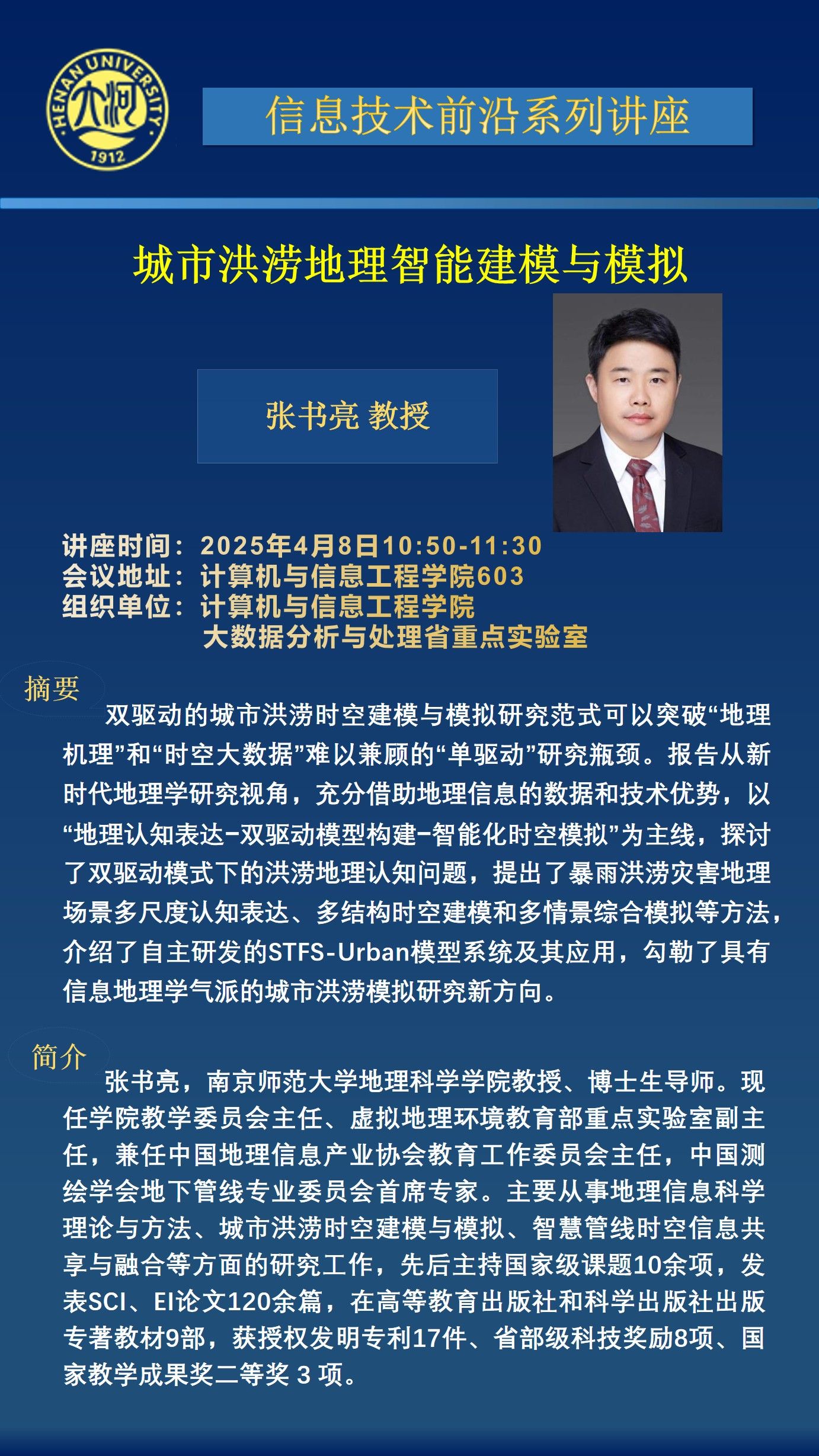 张书亮:城市洪涝地理智能建模与模拟(时间:4月8日)