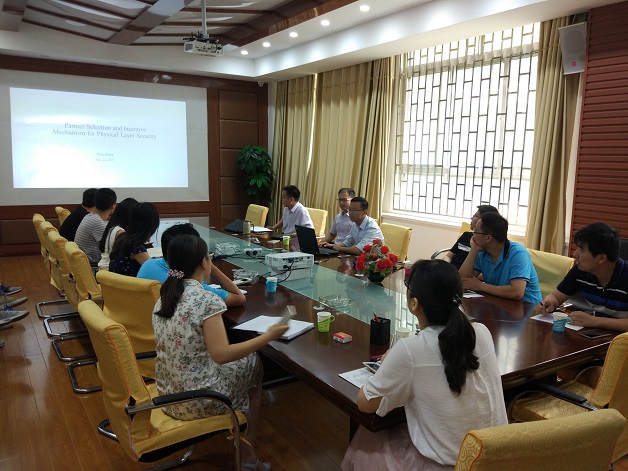 2017年7月21-22日期间,张宁博士访问车联网协同技术实验室,针对车联网物理层安全、空地协作组网等领域的合作研究展开讨论。7月22日上午,张宁博士在曾宪梓楼104会议室作专题报告“Partner Selection and Incentive Mechanism for Physical Layer Security”,实验室周毅博士主持会议,车联网团队全体骨干成员及研究生参加研讨,会上针对信道认知加密、博弈论机制、空地协同等方面的研究问题与张宁博士进行了交流,双方期待今后能加强合作及交流互访。