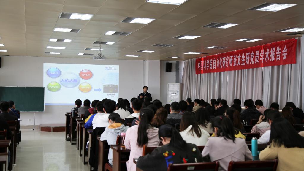 邀请,中国科学院自动化研究所研究员张文生在学院603会议室作了题为“深入理解人工智能的本质”的学术报告。报告会由学院副院长胡振涛主持,百余名师生聆听了此次报告。