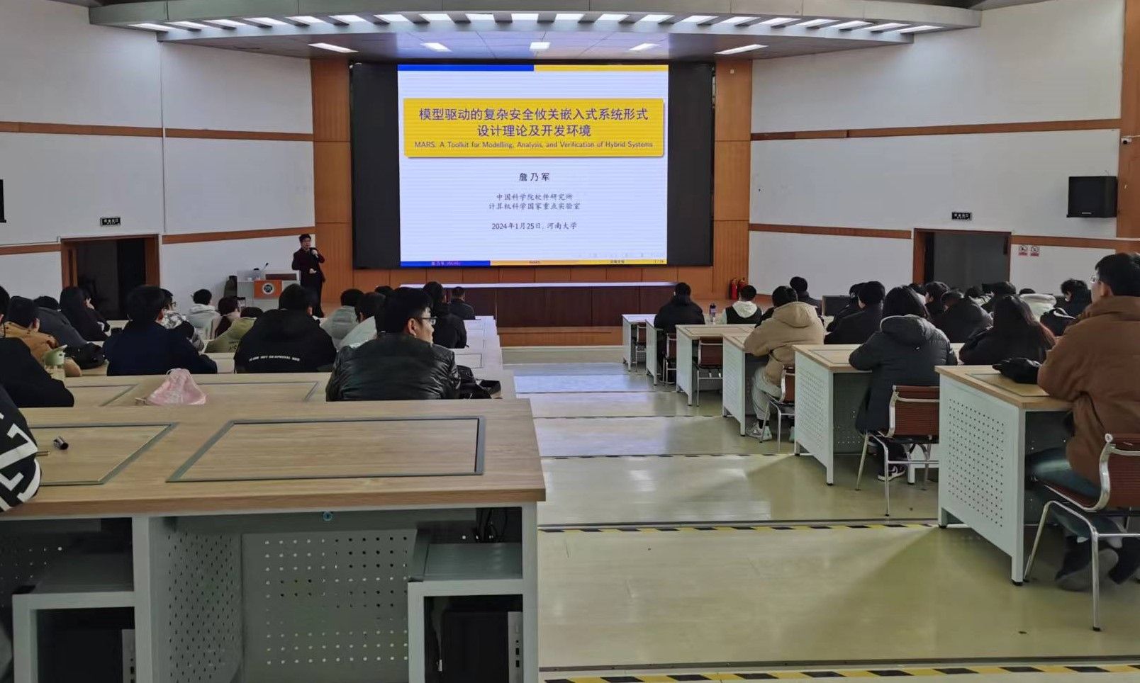1月25日下午,学院邀请中国科学院詹乃军教授为黄瓜视频 师生作主题为《模型驱动的复杂安全攸关嵌入式系统形式设计理论及开发环境》的学术报告,报告会由学院副院长左宪禹教授主持。报告会在学院201会议室举行,学院教师和研究生参加了本次报告会。