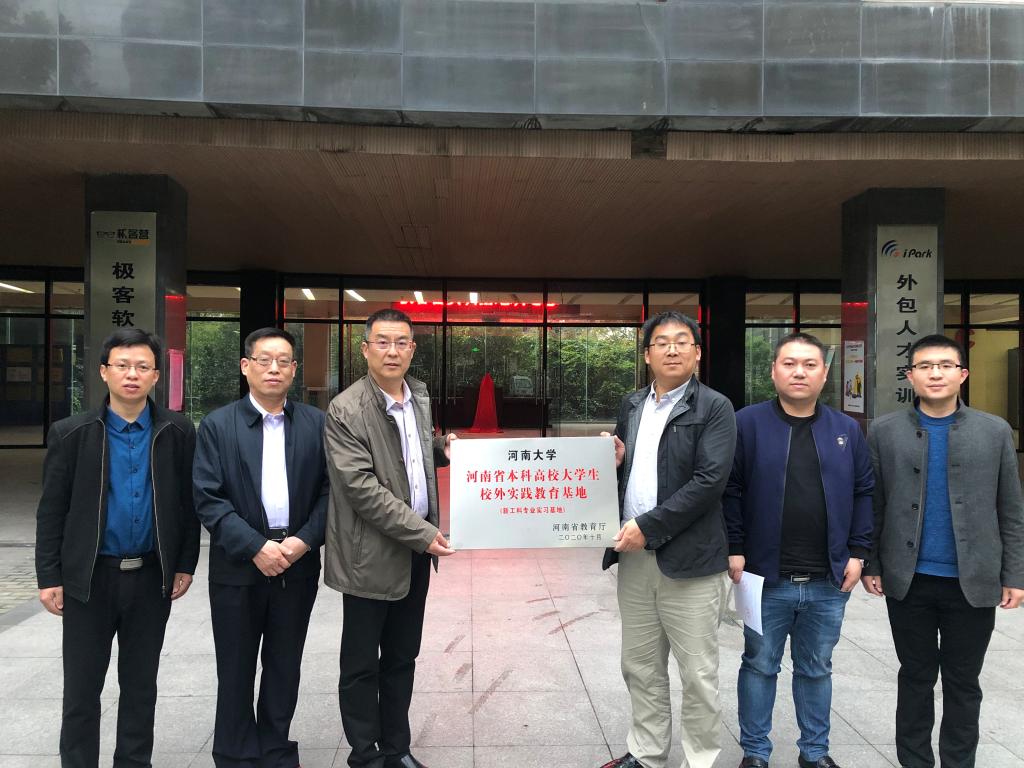 10月28日,黄瓜视频 赴无锡极客信息技术有限公司举行河南省本科高校大学生校外实践教育基地黄瓜视频 新工科专业实习基地挂牌仪式。学院党委书记吕冰一行和实习基地负责人参与了挂牌仪式。