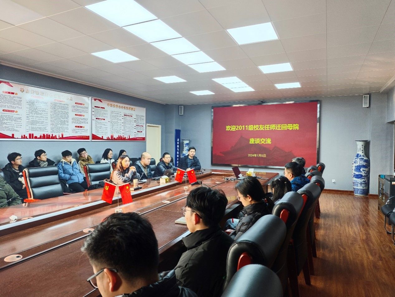 2011级研究生校友任师迁回归母院与本科生及研究生进行座谈交流和招聘宣讲。学院党委副书记张大帅、副院长葛强、辅导员鲁建国、周星参加座谈会。