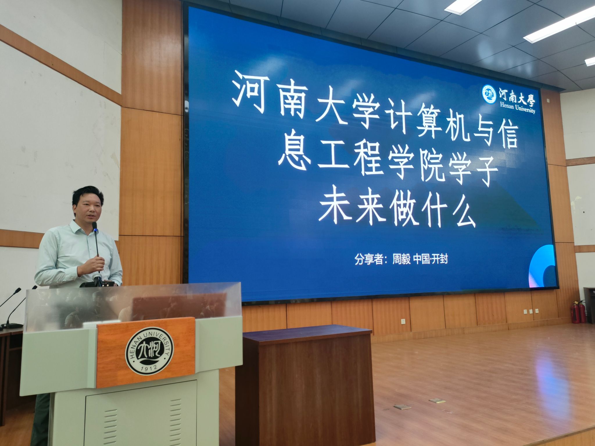 学院副院长张勇首先介绍了周毅的基本情况,随后周毅简要介绍了其公司主要产品和主营业务,并分享了他的学习经历与创业经验,同时从计算机专业方向和市场需求等方面,为同学们提供了许多切实可行的指导意见。